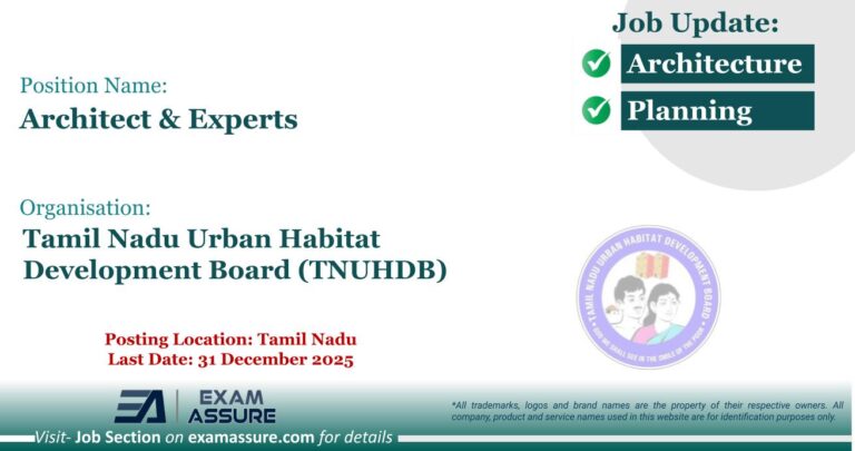 Vacancy for Architect & Experts at Tamil Nadu Urban Habitat Development Board (TNUHDB) | Posting Location: Tamil Nadu (Last Date: 31 December 2025)