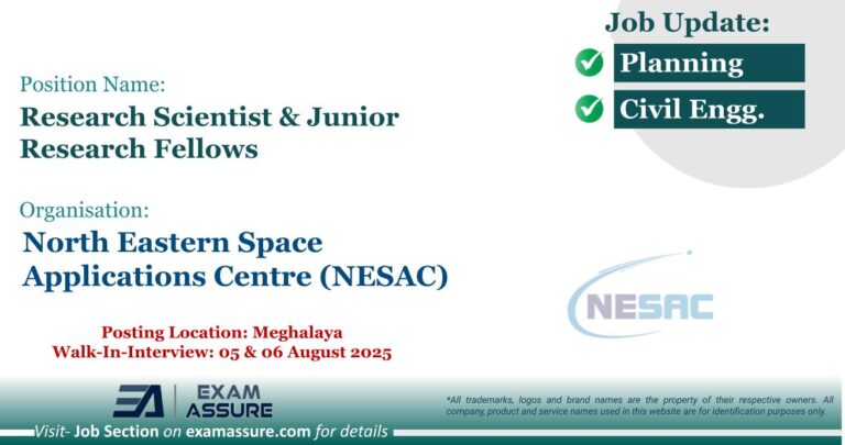 Vacancy for Research Scientist & Junior Research Fellows at North Eastern Space Applications Centre (NESAC) | Posting Location: Meghalaya (Walk-In-Interview: 05 & 06 August 2025)