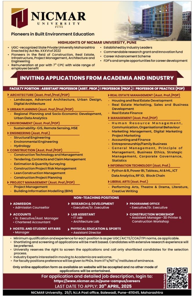 Vacancy for Faculty & Non-Teaching Positions at NICMAR University