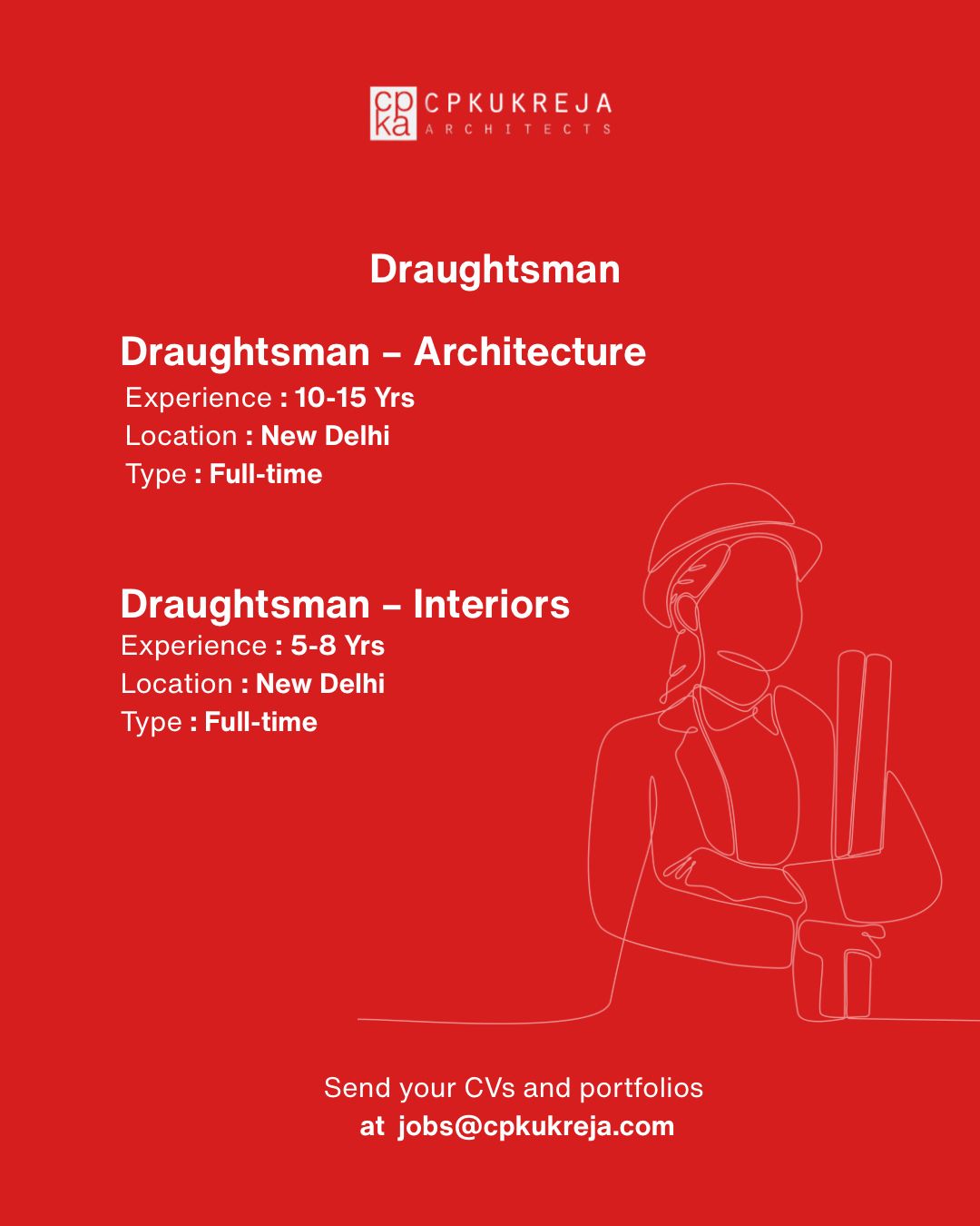 Vacancy for Multiple Positions (Architect, Draughtsman, etc.) at CP Kukreja Architects | Posting Location: Delhi, Kerala & MP (Exp.: 03-15 Years)