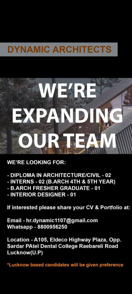 Vacancy for Multiple Positions (Architects, Interns, Interior Designer, etc.) at Dynamic Architects