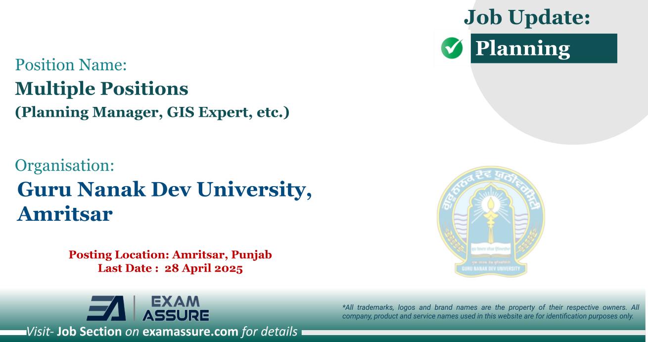 Vacancy for Multiple Positions at Guru Nanak Dev University, Amritsar