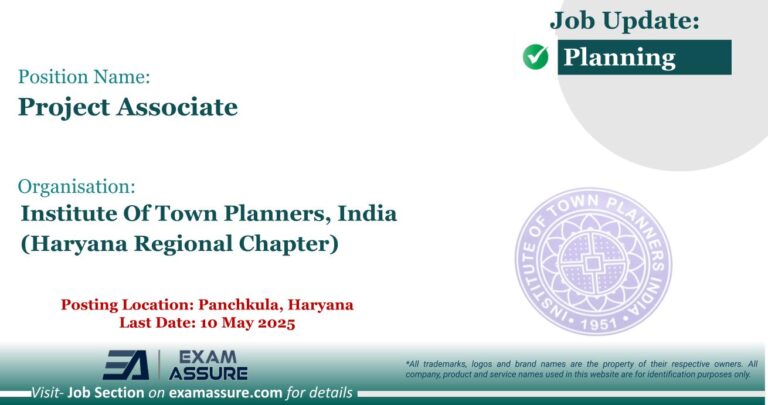 Vacancy for Project Associate at Institute Of Town Planners, India (Haryana Regional Chapter) | Posting Location: Panchkula, Haryana (Last Date: 10 May 2025)