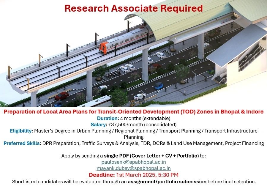 Vacancy for Research Associate at School of Planning and Architecture (SPA, Bhopal)
